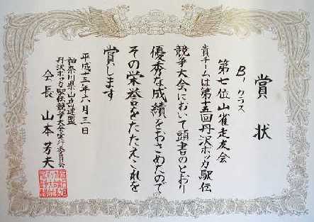 | 山雀走友会A | 1:14:53 | 7/53 | 大山 俊行 | 吉浜 敬 | 尾関 和頼 | 八角 猛司 | ||||