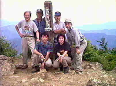 しかし道がだんだん険しくなり、岩が現われ木の根が邪魔になり次第に難行苦行の歩きに変わり始めた頃、道の向うにホテルのような立派な建物が見えて来ました。しかし、これは山小屋では無く何かの練成施設らしく、大岳山荘は隣の古めかしい木造の小屋でした。山荘の前が開けて突然山のパノラマが目に飛び込みました。右端に富士山、目の前は紛れも無い丹沢の山並みです。あっけに取られて暫し無言、夢中で山々を見渡しました。まさに感無量の気分です。明るい日差しの中で小休止、宇山・吉田組はオヤツを食べ、竹内・石井組はコキジ打ち(勿論トイレで)、山本氏は横になって一眠り? と、それぞれの自由時間僅か10分。