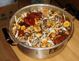 カラマツ林の中でハナイグチ、キヌメリガサなどが各自ビニール袋いっぱいに採れました。8日夕方には石井さん、木さんも合流し、きのこ鍋を囲んで盛大な宴会になりました。