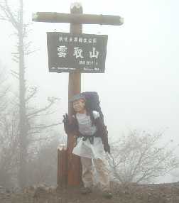 ビニール袋の即席カッパでご満悦のKさん。しかし山をナメているとしか... |