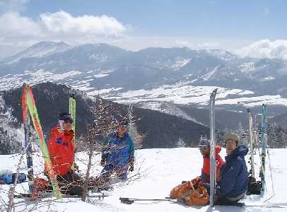 私はひとり人の行かない林の中などに突っ込みたがる。新雪は壮快。たくさんの山スキー愛好家が登ってくるので驚く。ただややガリガリ斜面。新潟の故郷の裏山の柔らか斜面がなつかしい。