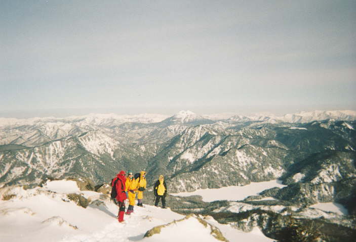 2/21 快晴。アイゼンが良く効くが、朝一の急な登りは息が切れる。頂稜部での全員の言葉は「ここを下山に使いたくない」だった。 頂上で写真を撮りすぐに阿弥陀ヶ池方面に下るが、途中ルンゼ上の急な部分などあったので澤田さんや一色さんにも楽しんで頂けたことでしょう。 帰りに体調不良者がいたので落下防止の腰ベルトを付けるのを条件に乗せてもらった。 <リフト終点11:37-避難小屋15:47> ♪こんな景色の中にいられるなんて幸せ♪ |